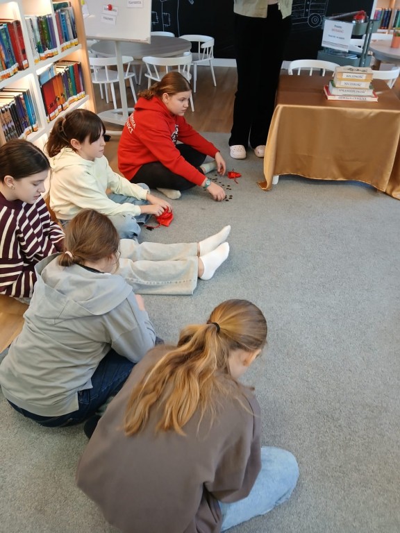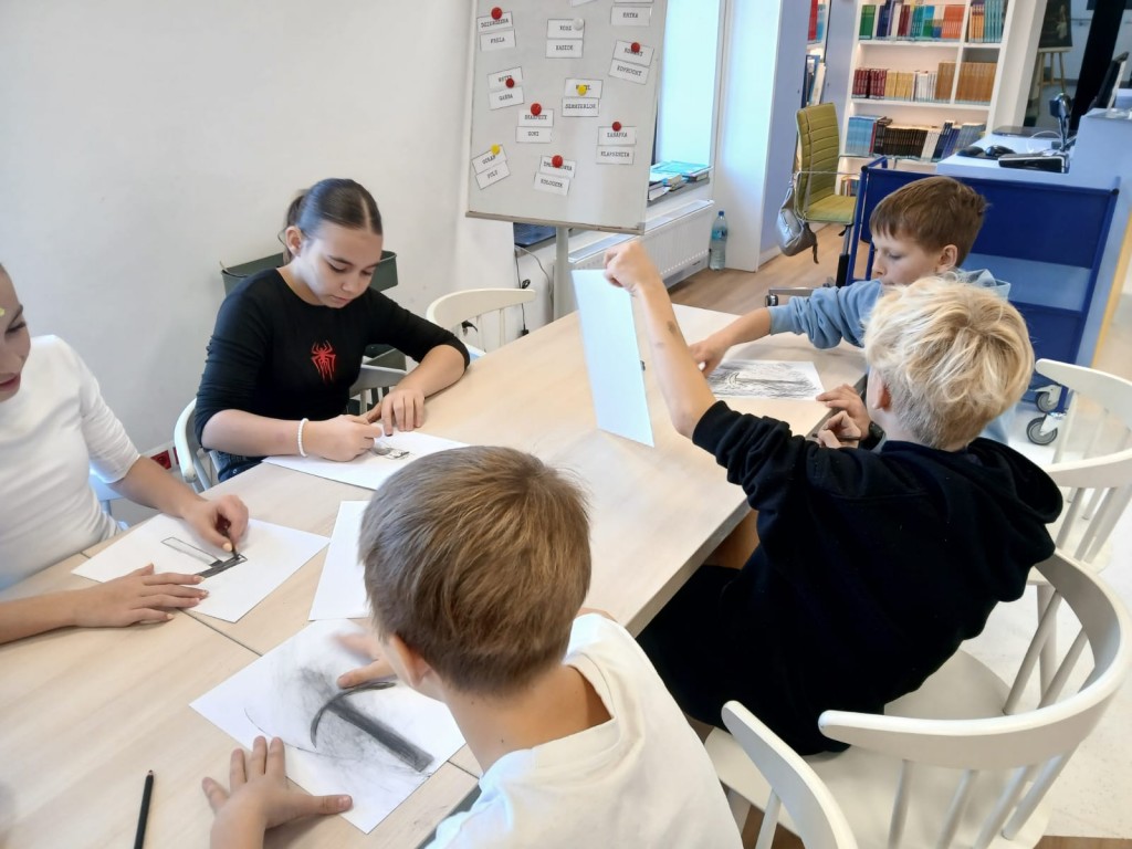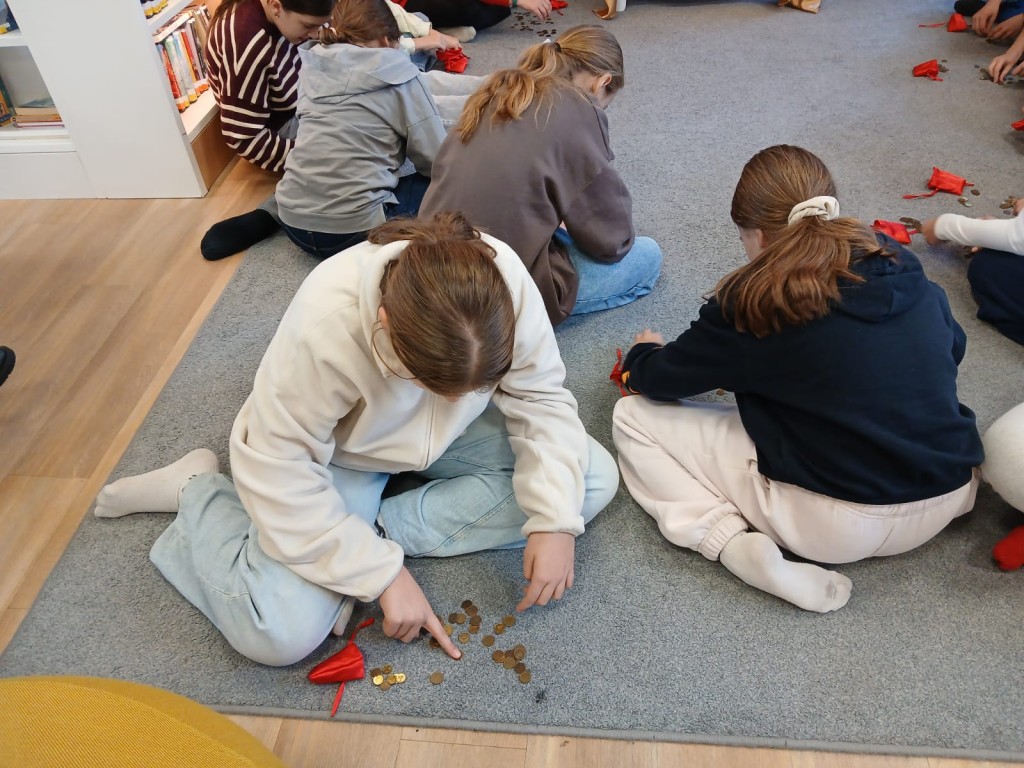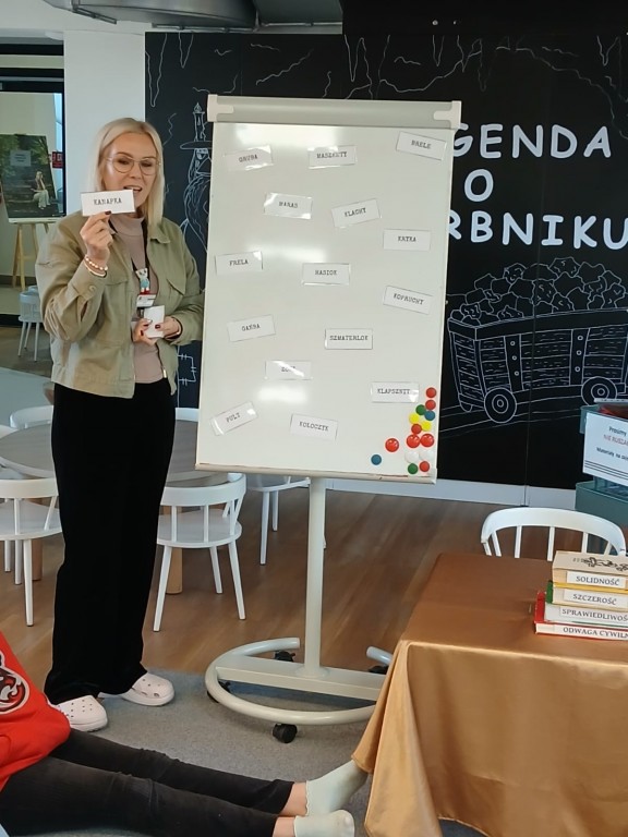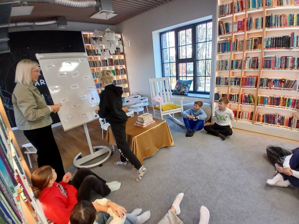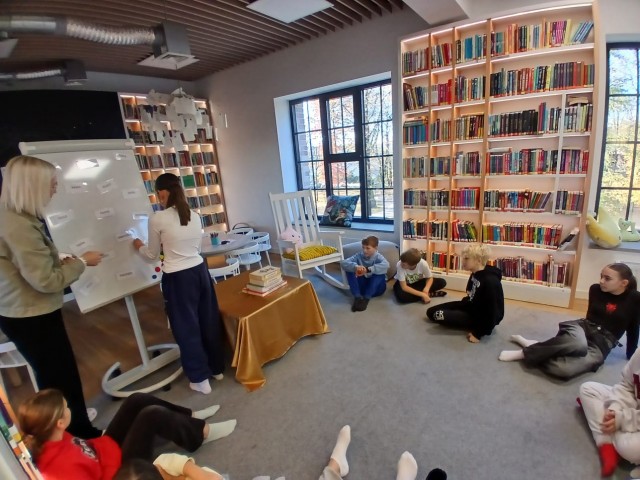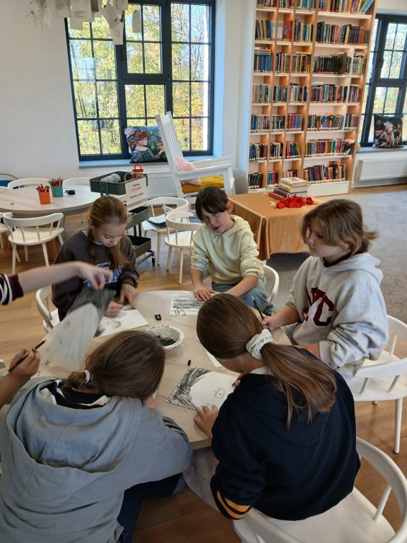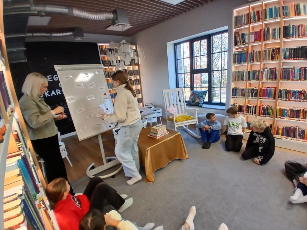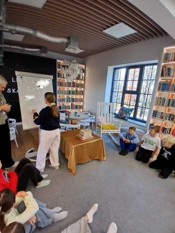 4 listopada 2025 roku klasa 5a wraz z wychowawcą udała się do biblioteki do Żor. Tam odbyła się lekcja biblioteczna "Legenda o skarbniku". Najpierw uczniowie wysłuchali teatrzyku kamishibai, potem rozmawiali o szczerości, sprawiedliwości, solidności i odwadze cywilnej. Odgadywali słówka śląskie, liczyli pieniądze w sakiewkach oraz malowali węglem prace plastyczne o trudnej pracy na kopalni i skarbniku. Potem zwiedzali całą bibliotekę, która wcześniej była młynem. Na zakończenie oglądaliśmy w kinie film "Złodziej pioruna" na podstawie książki Ricka Riordana.