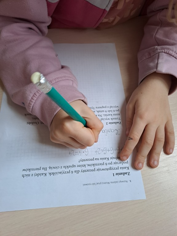 Uczniowie klas drugich z radością meldują realizację grudniowego modułu programu „Natalka i Antek w świecie wielkiej matematyki”. Podczas zajęć wykorzystywali elementy kojarzące się ze Świętami Bożego Narodzenia – bombki, łańcuchy oraz choinkę.Zanim jednak bombki zostały rozpakowane i udekorowane, uczniowie intensywnie ćwiczyli tabliczkę mnożenia, wykonując różnorodne zadania matematyczne. Dopiero po ich rozwiązaniu przyszedł czas na kreatywną część zajęć – wspólne ozdabianie bombek.